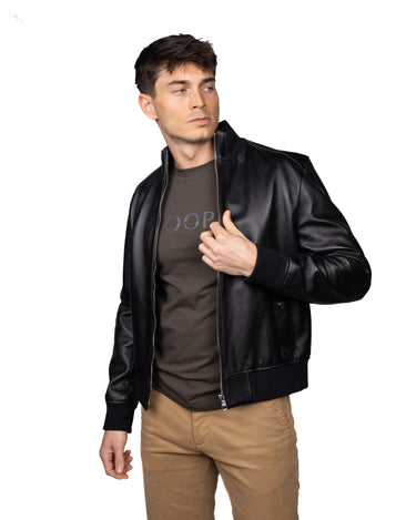 BOSS Bomber Lederjacke – Schwarz (50, 54)
