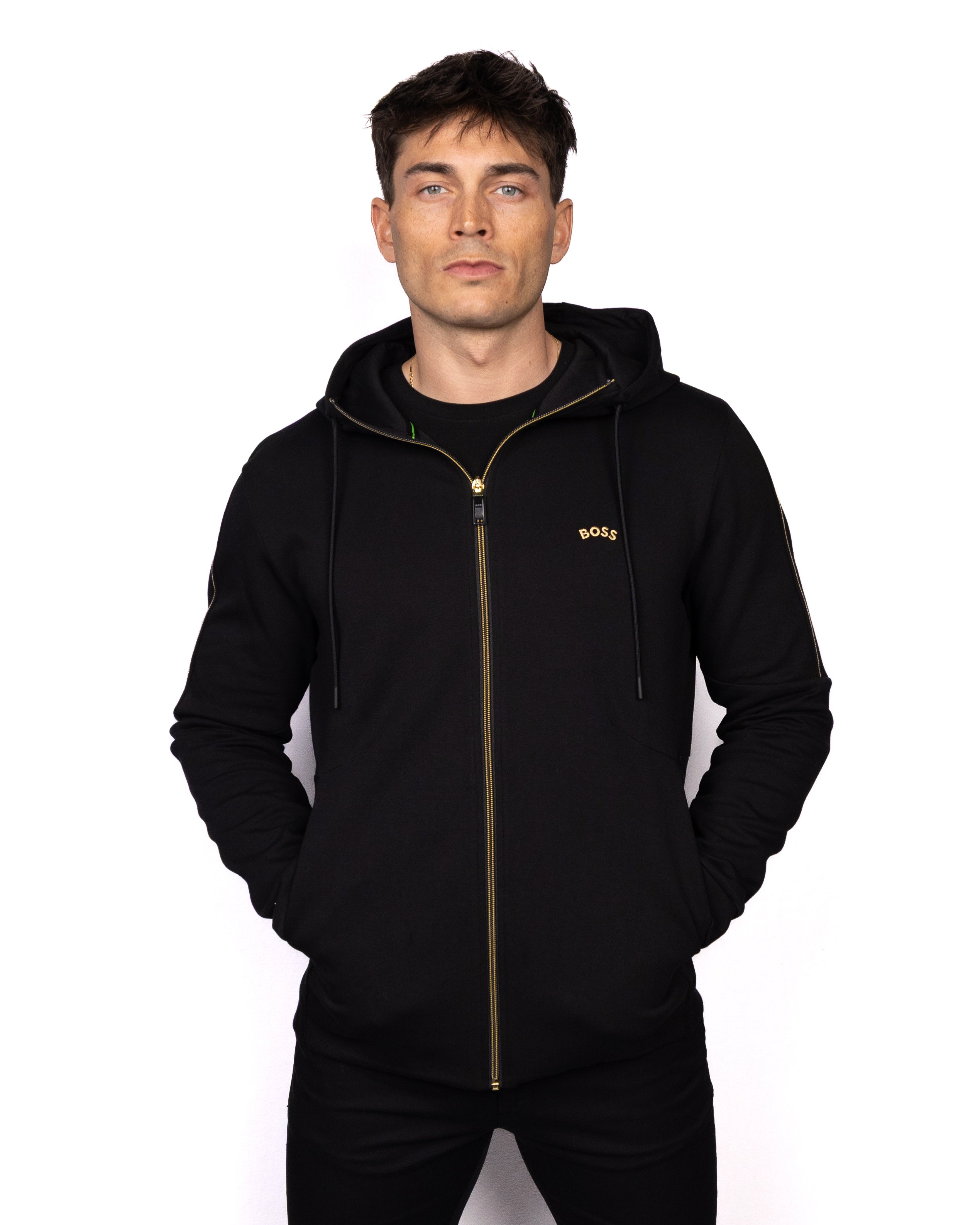 BOSS Trainingsjacke saggy 2 – Schwarz/Gold (XL)